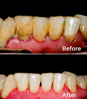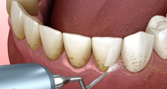 · સામાન્ય રીતે, દુ:ખાવા વગરની પ્રક્રિયા. જેમાં અલ્ટ્રાસોનિક વાઇબ્રેશન અને પાણીનો પ્રવાહ દાંતની આસપાસની ક્ષાર અને છારી (પ્લેક અને ટર્ટાર)ને સાફ કરે છે.