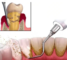 · Dentist use special instrument to gently remove plaque and tartar from teeth and under gum line.